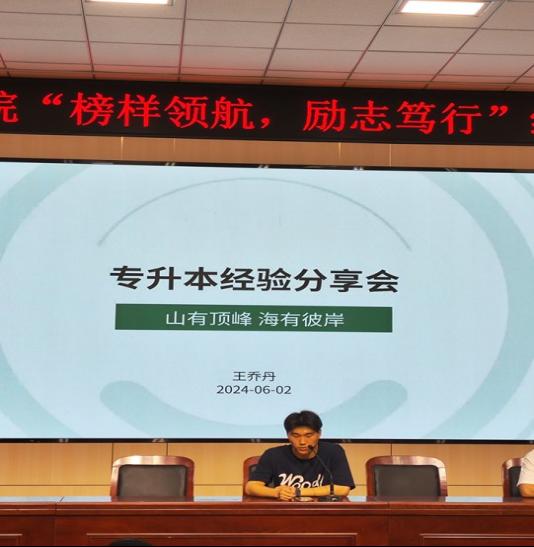 首先,公司特别邀请了专升本成功的学长王乔丹来到现场分享经验。学长登台后,深情地讲述道:“专升本的旅程并非一帆风顺,其中充满了挑战与艰辛。但正是凭借着坚定的信念和不懈的努力,我才得以突破重重困难,成功踏上更高的平台。在这个过程中,我学会了合理规划时间,充分利用每一分每一秒去学习;也学会了在遇到挫折时不气馁,勇敢地面对并战胜它们。希望学弟学妹们能从我的经历中汲取力量,勇敢地去追求自己的梦想。”