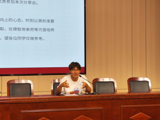其次,获得国家励志奖学金的学长张文举登台发言。他激动地说:“获得国家励志奖学金对我来说不仅是一份荣誉,更是一种激励和责任。并激励学弟学妹们在学习中,要保持高度的自律和专注,合理规划时间,充分利用每一分每一秒。同时,不要害怕困难和挫折,要把它们视为提升自己的机会。只要我们持之以恒地努力,就一定能够实现自己的梦想。”最后,王洁莹书记总结希望同学们以这些优秀学长为榜样,坚定目标,努力拼搏,在学业和人生道路上创造属于自己的辉煌。