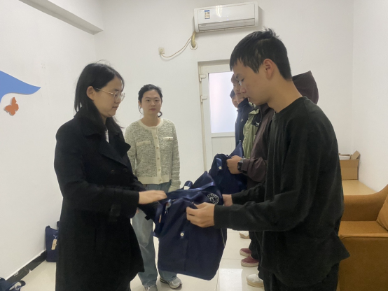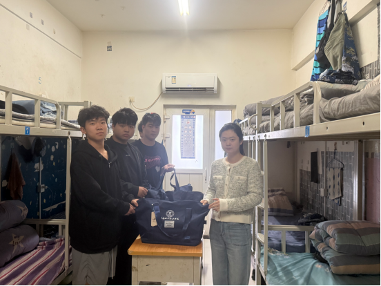 此次发放的资助大礼包聚焦新生日常生活需求,内含洗衣液、牙膏、卫生纸等生活用品,切实解决了部分新生入学初期的物资需求。在宿舍走访过程中,王洁莹与刘文琪不仅亲手将礼包递到新生手中,还与他们亲切交谈,详细询问入学后的适应情况、学习规划及生活困难,耐心解答新生的疑问,并鼓励他们正视困难、积极向上。新生们纷纷表示,感受到了“家人”般的关怀。