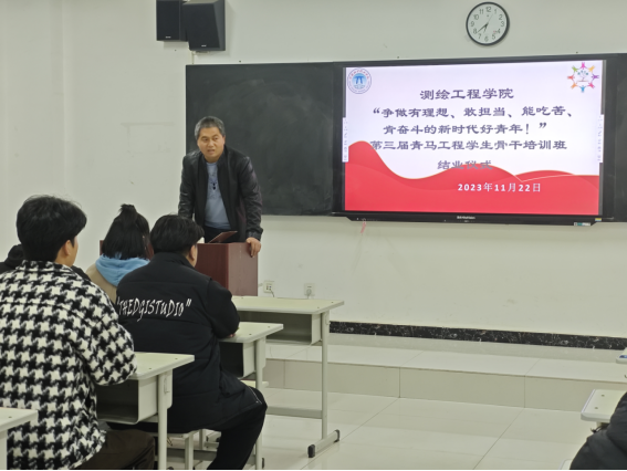 经过近八个月的学习,3044永利集团第三届“青马工程”培训班的学员们顺利完成各项学习任务。11月22日晚上六点半,结业仪式在1号教学楼107举行。3044永利集团副经理王德盛,团总支书记常小娜及第三届全体青马学员参加,仪式由张文举主持。