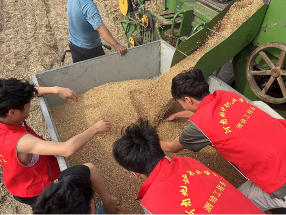 我系20周口籍员工、预备党员赵博士专升本落实之后,眼见家乡不少粮农为之发愁,自觉号召周边测绘学子及优秀青年,组成了郸城张完乡小分队,帮助困难农户抢割、抢收、抢运小麦,确保颗粒归仓,用实际行动践行志愿服务宗旨,展现新时代青年的责任和担当。