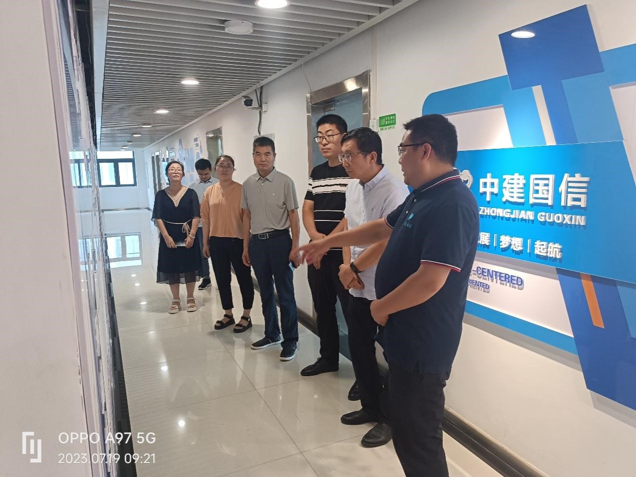 上午9点一行人到达中建国信大数据集团有限公司,公司副总常怡然、鲍燕辉,办公室主任赵东生,市场部主任宋永杰出席了调研访谈工作。