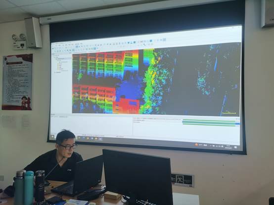 培训会在图文信息楼六楼空间信息实训室举办。陈建文经理详细讲解了三维激光扫描数据处理的流程,邀请老师和同学们积极参与体验三维激光扫描仪。