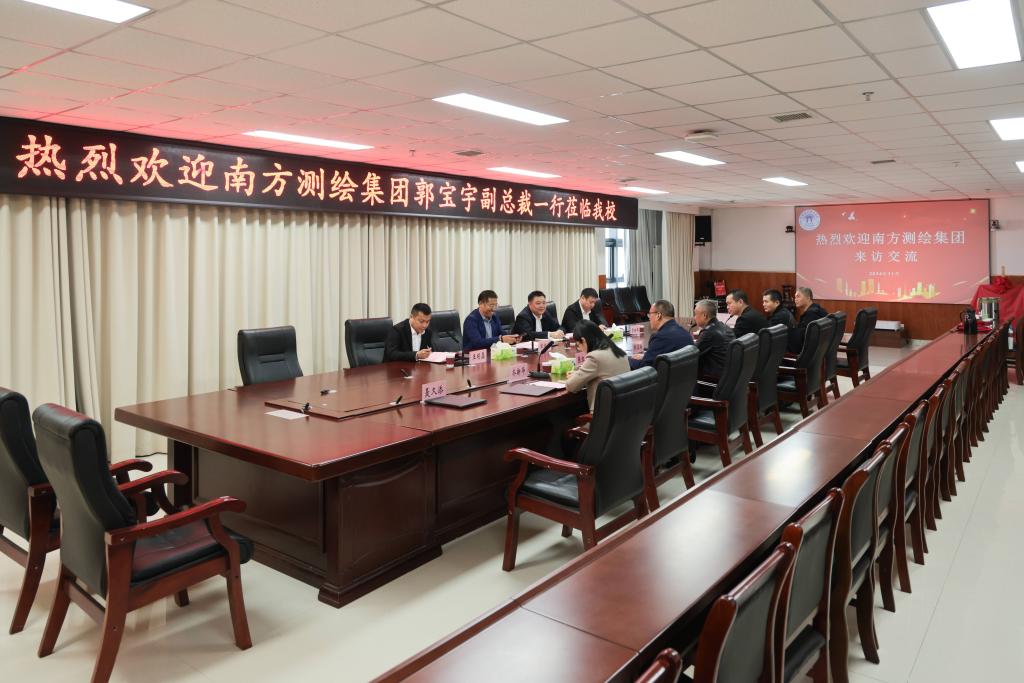 董事长刘玉宾对南方测绘集团副总裁郭宝宇一行表示热烈欢迎,介绍了公司发展历程与测绘专业建设和发展情况。刘董事长表示希望校企双方在以往良好合作的基础上,以本次共建元宇宙智能测绘实训中心为新的起点,不断拓展合作范围、深化合作内容、探索多元化的合作方式,有效提升公司的实践教学水平,加快测绘专业公司产品改革,推动校企产学研的深度融合,助力公司高质量发展提升。