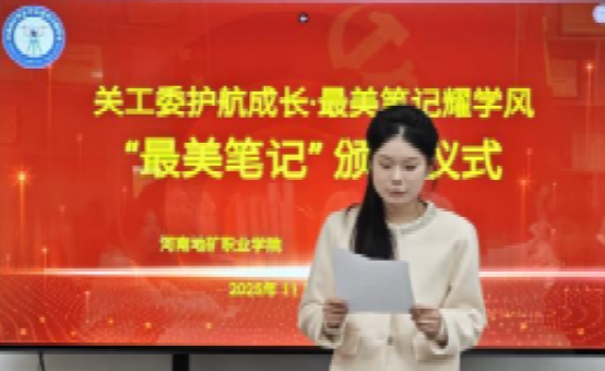获奖员工发言环节,24级李怡含同学感谢关工委及老师们的悉心指导,坦言荣誉离不开育人团队的保驾护航;25级新生李安娜分享整理笔记适应专业学习的方法,展现勤学善思风貌。左书记寄语学子以优秀为标杆锤炼自我,强调关工委将持续以“关爱”为核心搭建平台;卢经理指出记好笔记是学习起点,更需养成专注钻研习惯;郭萌代表勉励同学们精进技能,成长为契合测绘行业需求的高素质人才,传承地矿精神。