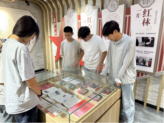在党群服务中心文化馆,师生们详细了解了中心在党建、政务、文化、志愿服务等方面的公益服务开展情况,以及特色党建活动和公益便民服务的先进经验做法,师生们真切体会到劳模精神在基层工作中的生动实践。