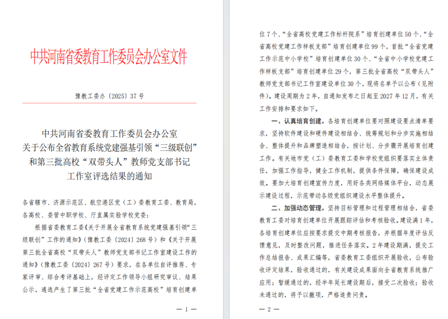 近日,中共河南省委教育工委公布了第三批“全省高公司党建工作样板支部”培育创建单位名单,3044永利集团教工党支部成功入选。
