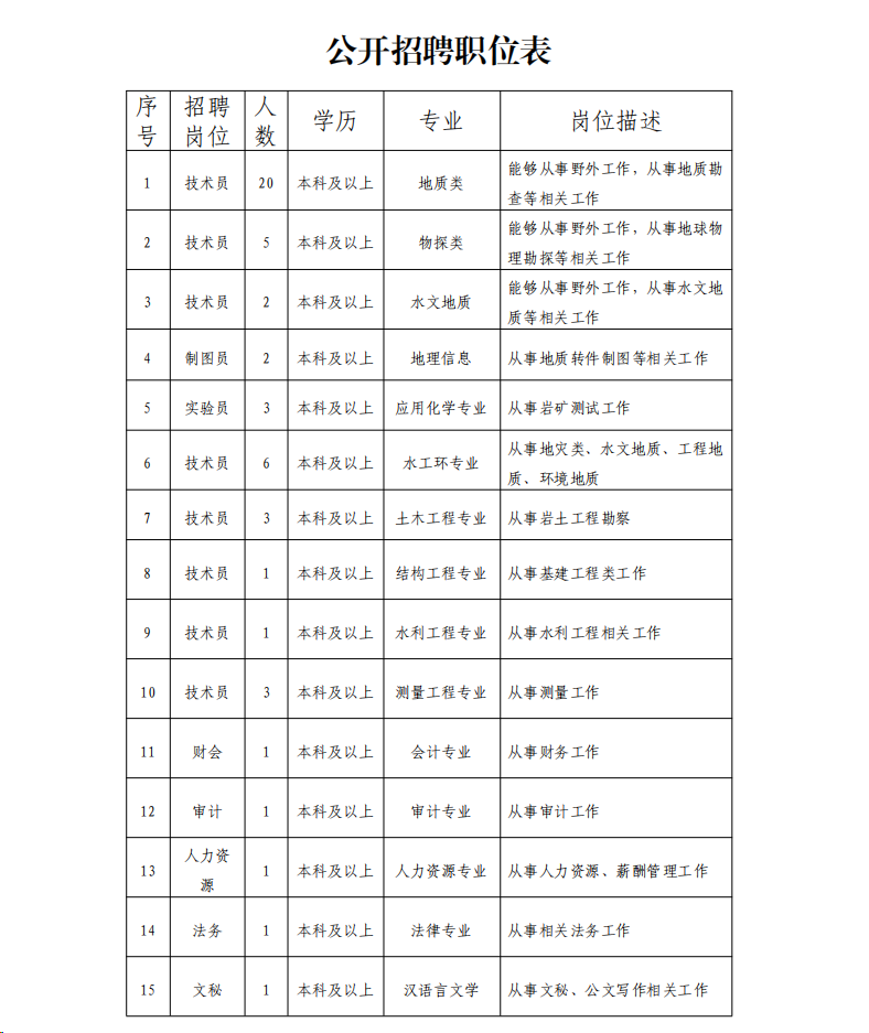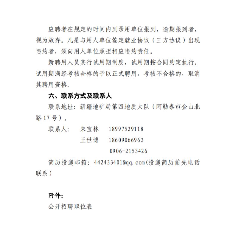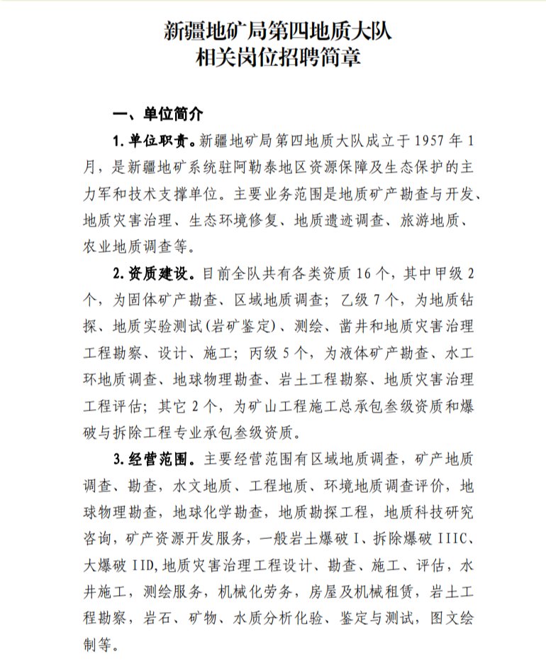 新疆地矿局第四地质大队招聘