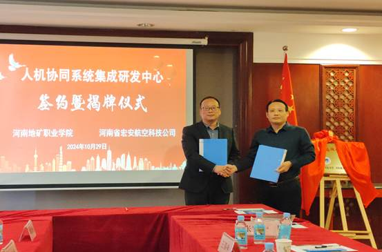 10月29日,公司与河南省宏安航空科技有限公司举行签约仪式,共建低空智能校企研发中心、人机协同系统集成校企研发中心。副董事长张红兵、河南省宏安航空科技有限公司总经理刘定乾共同为中心揭牌。